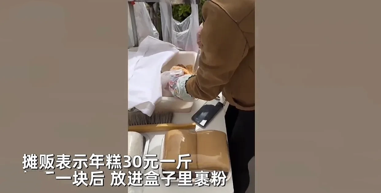 女子买年糕30元一斤结账92元,掀开裹粉盒发现藏货