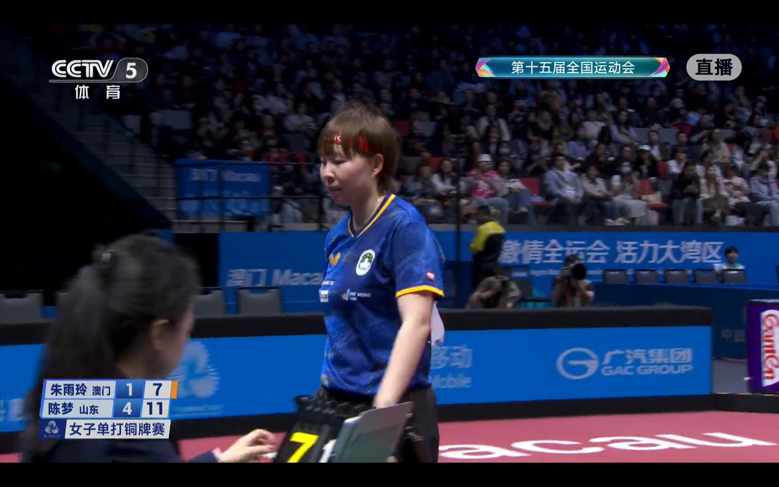 具体比分是:11-9,6-11,13-11,12-10,11-7。总比分陈梦4-1战胜朱雨玲夺得铜牌。