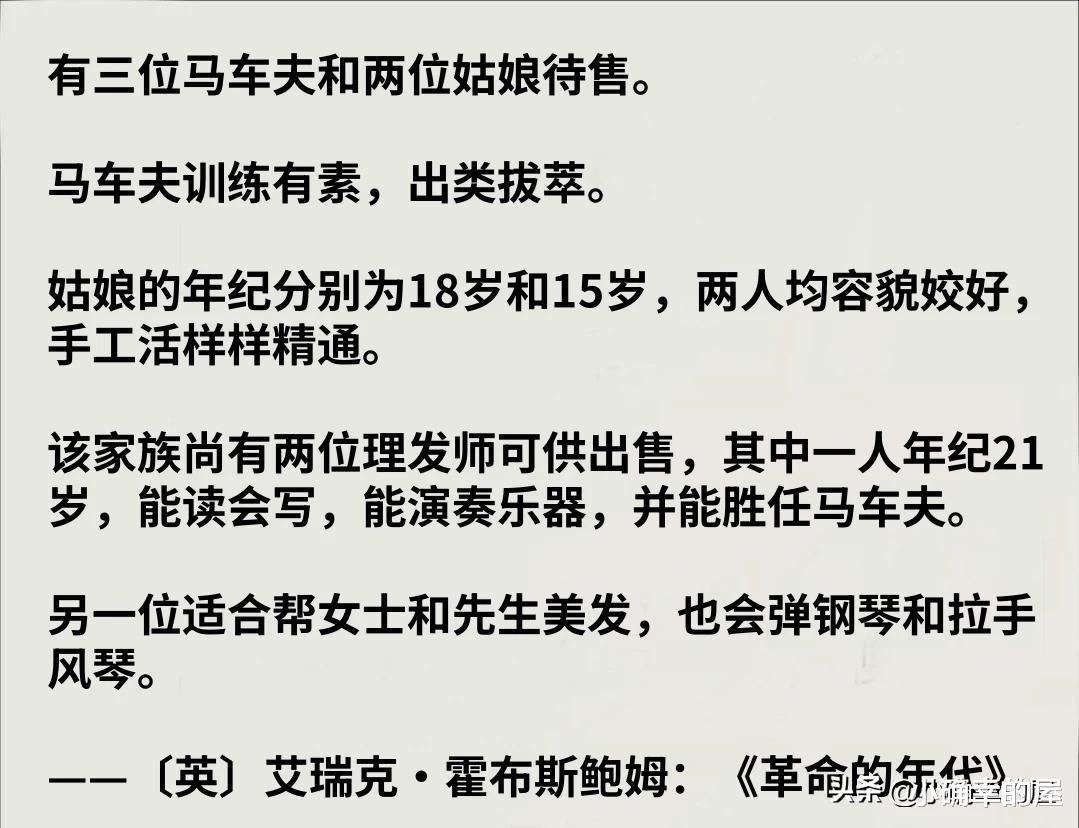 艾瑞克·霍布斯鲍姆(Eric Hobsbawm)的《革命的年代》中,写到一则刊登在1801年《莫斯科报》上的广告。