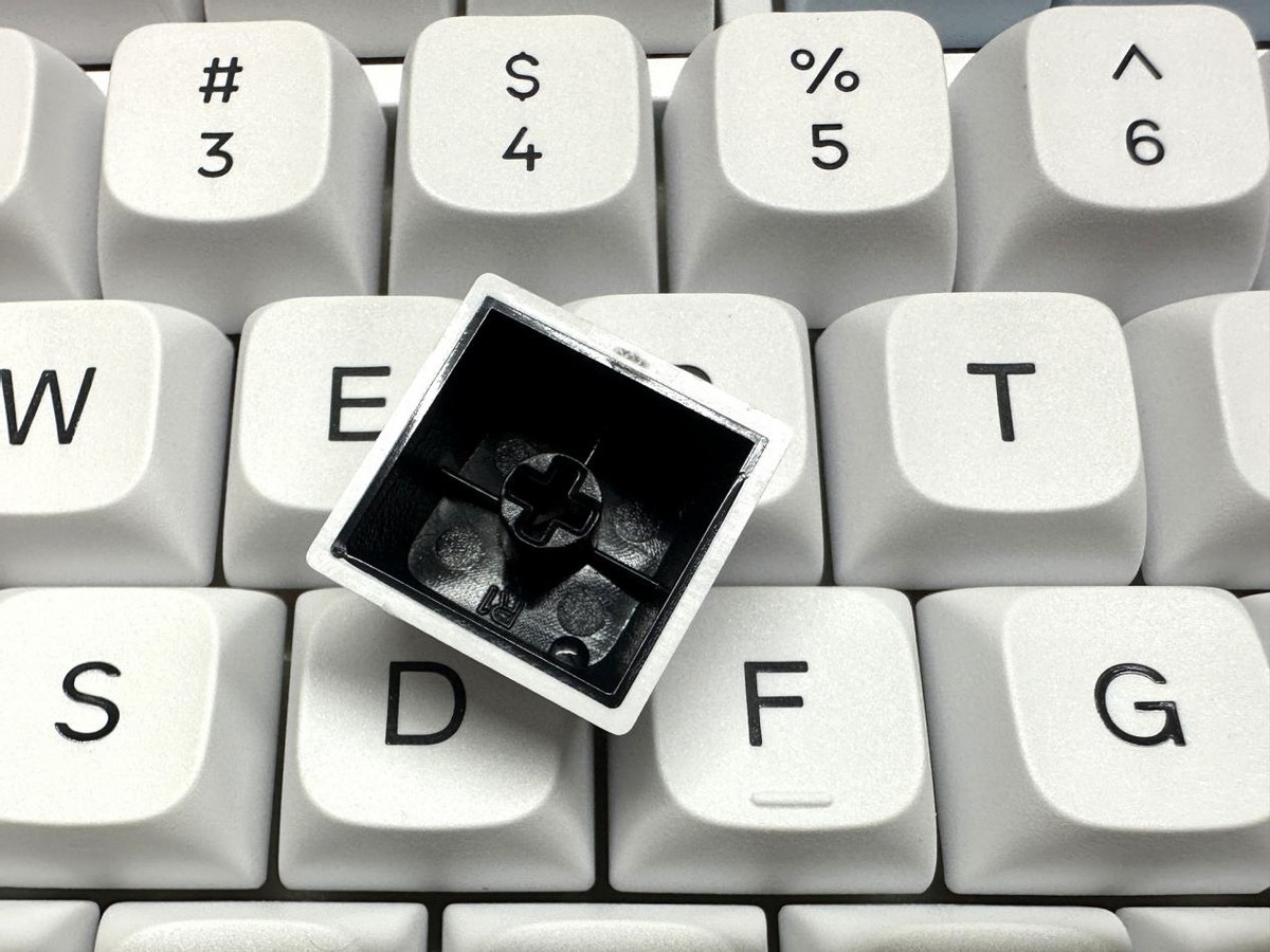 主流的PBT键帽工艺,纹理很细腻,色彩也更鲜明。键帽的表面做了细微的磨砂处理,手指接触的感觉很实在,让人忍不住想要噼啪噼啪直接开打。