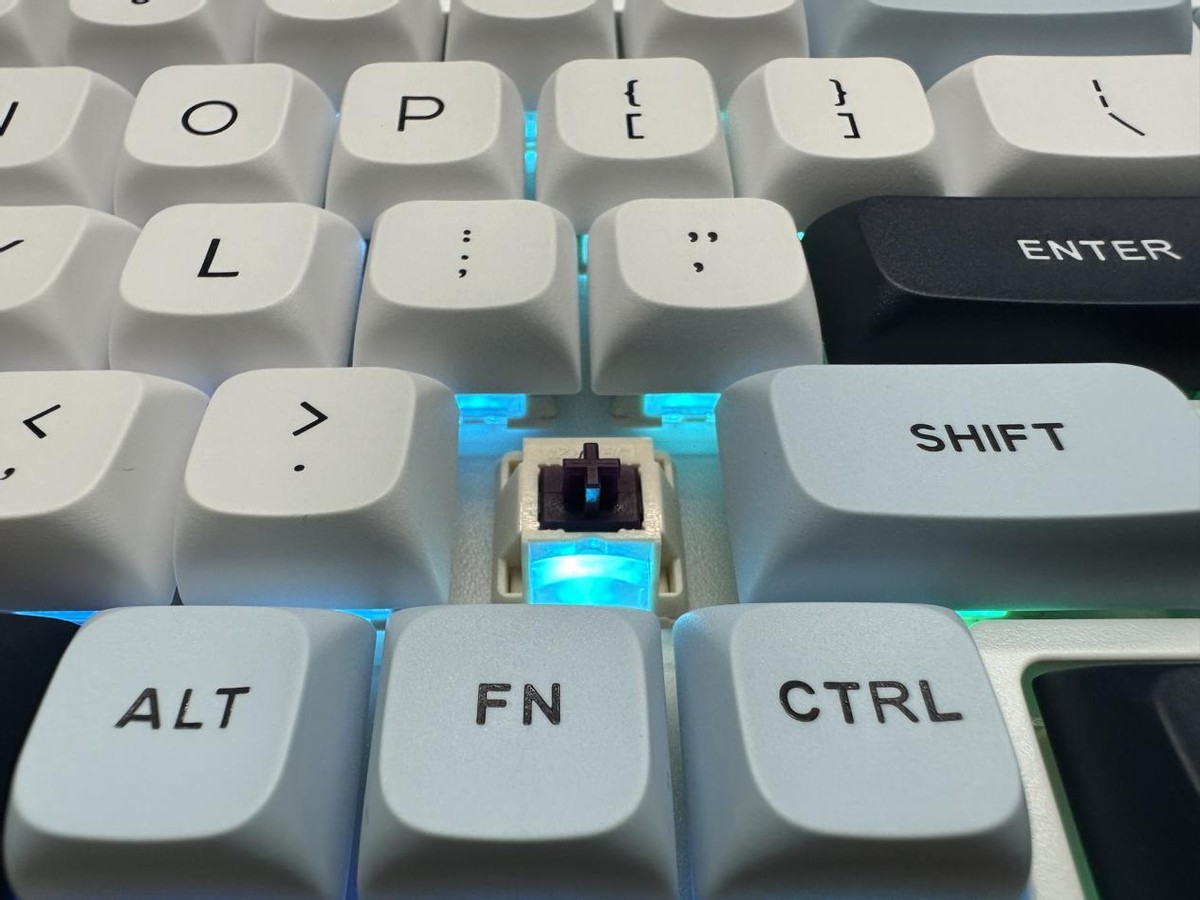 珂芝K75V2的键采用下灯位设计,轴体上导光板加工出一个倾角,让灯效更透亮,范围更广。