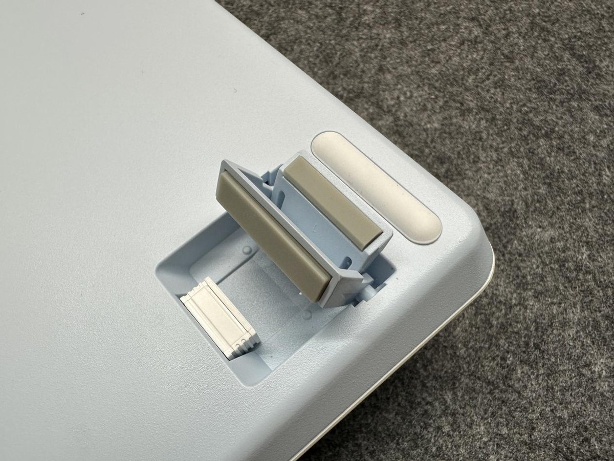 接收器藏在键盘支撑的位置,只有打开支撑才能取出接收器,可以有效防丢。比起之前的版本细节处理更到位了。