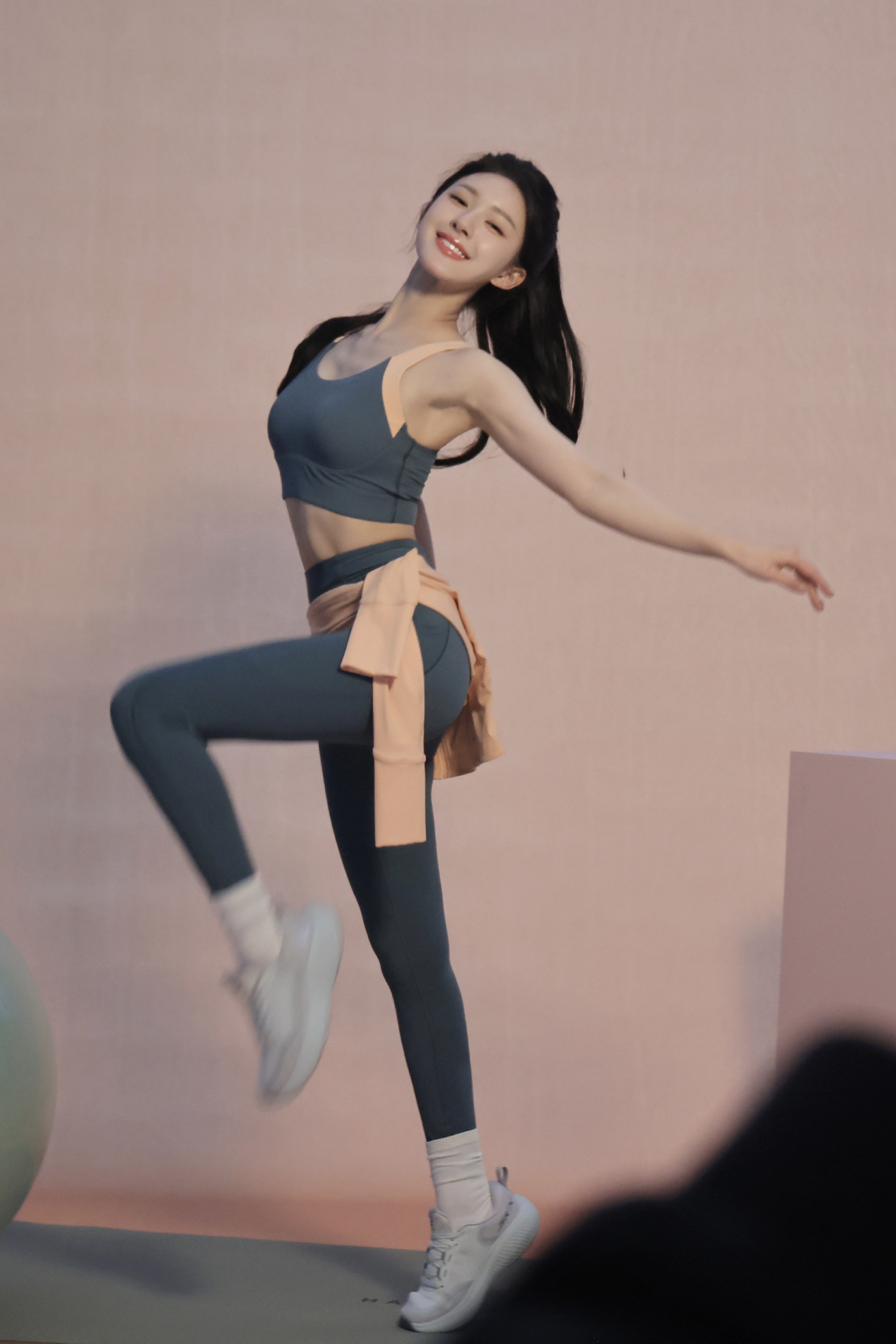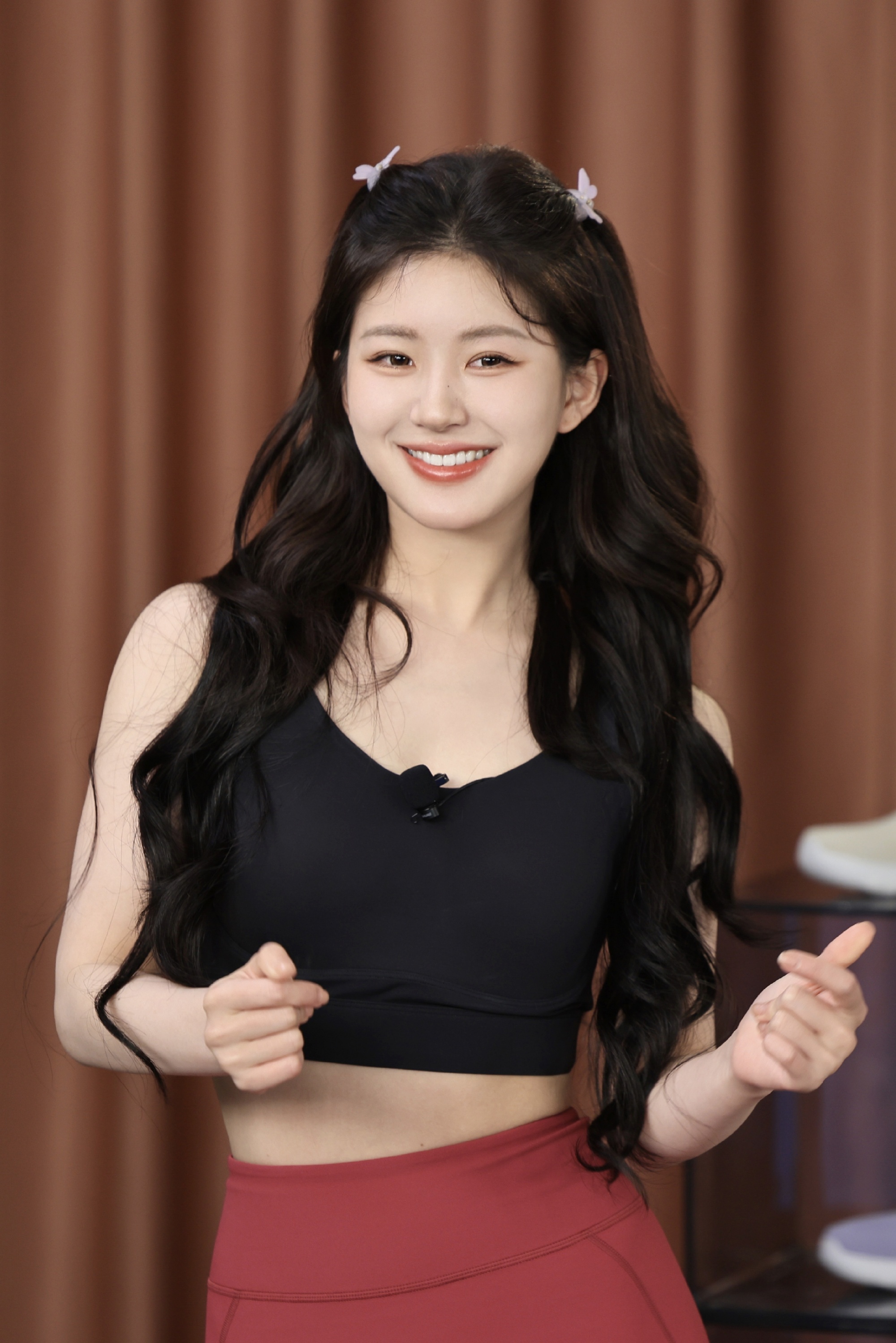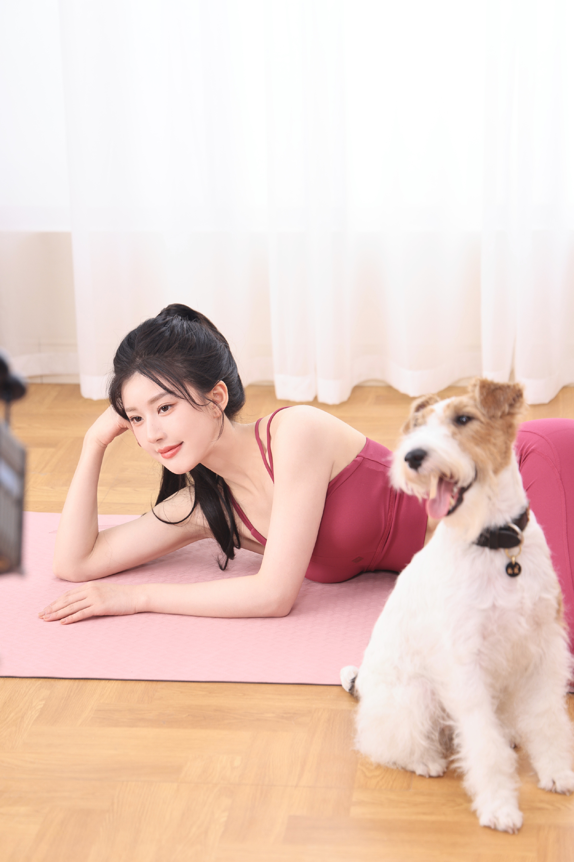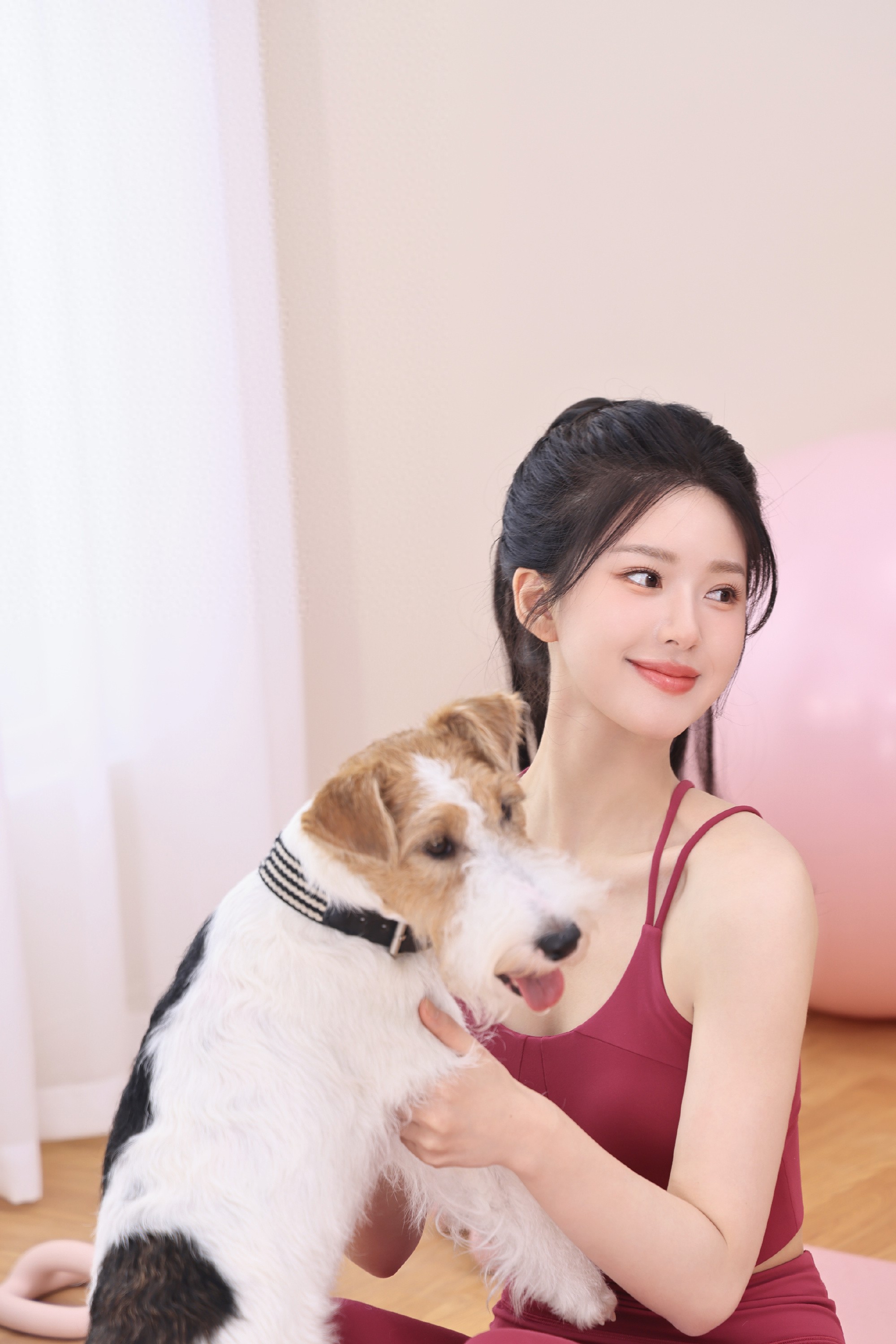 浅色系的房间里,粉色瑜伽垫铺在暖调木地板上,旁边散着几个粉白相间的小哑铃,连背景都软得像块棉花糖;可她往垫子上一坐,酒红健身服的“杀伤力”直接拉满:哑光弹力的浆果红面料贴在身上,却半点不显得臃肿,反而把肩臂的线条衬得又细又流畅,尤其是腰腹处那截特意空出的露腰设计,刚好卡在她腰线最细的位置,露出的皮肤白得晃眼,紧致得连一点多余的赘肉都没有,轻微的马甲线轮廓藏在软嫩的肤色里,是那种“练过但不凶”的舒展感。