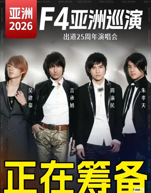 据悉,近期朱孝天不仅即将在南京开启自己的个人巡回演唱会,之前台媒也曝出过F4将在明年开启出道25周年巡回演唱会。