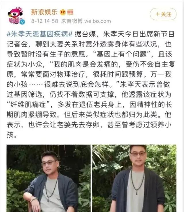 由于自身患病原因,朱孝天早年还在采访中透露过暂时没有生子的意愿。