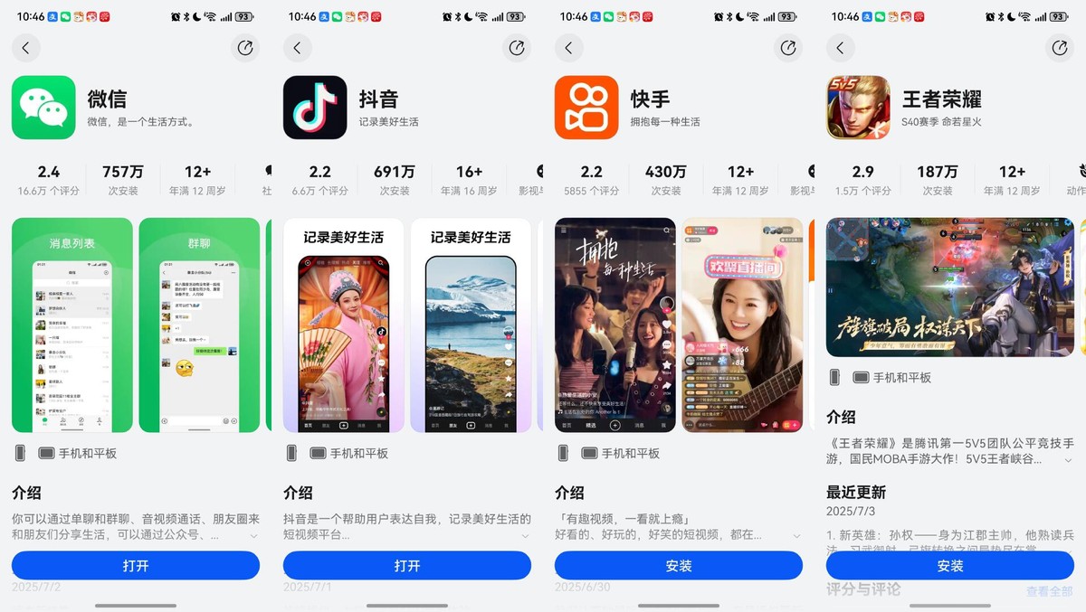 鸿蒙应用商店的发展也让我很惊喜。主流APP基本都能找到,更新节奏也非常快。像微信几乎每两周就有一次更新,抖音的版本更新更是频繁。从下载量和用户反馈来看,鸿蒙生态正在被越来越多的人接受,未来可期。