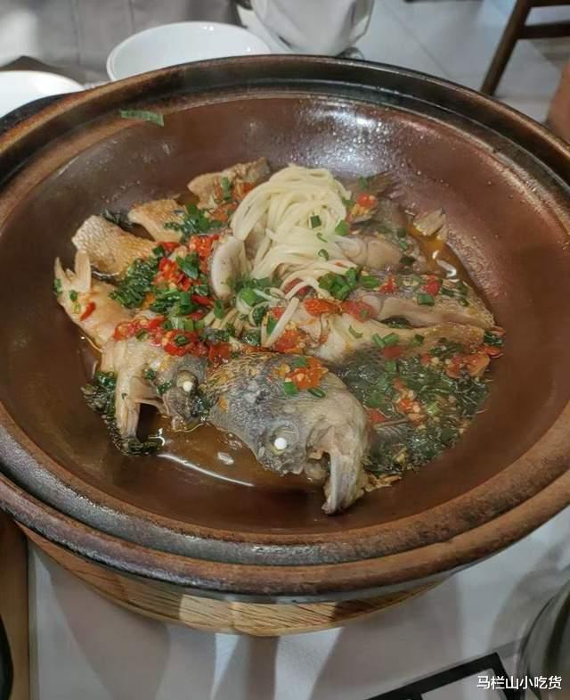砂锅鱼头,新鲜的鱼头,搭配剁辣椒一起砂锅烧制,吃起来鱼头鲜嫩,香辣入味,还配了一份凉水面,味道不错,值得点。