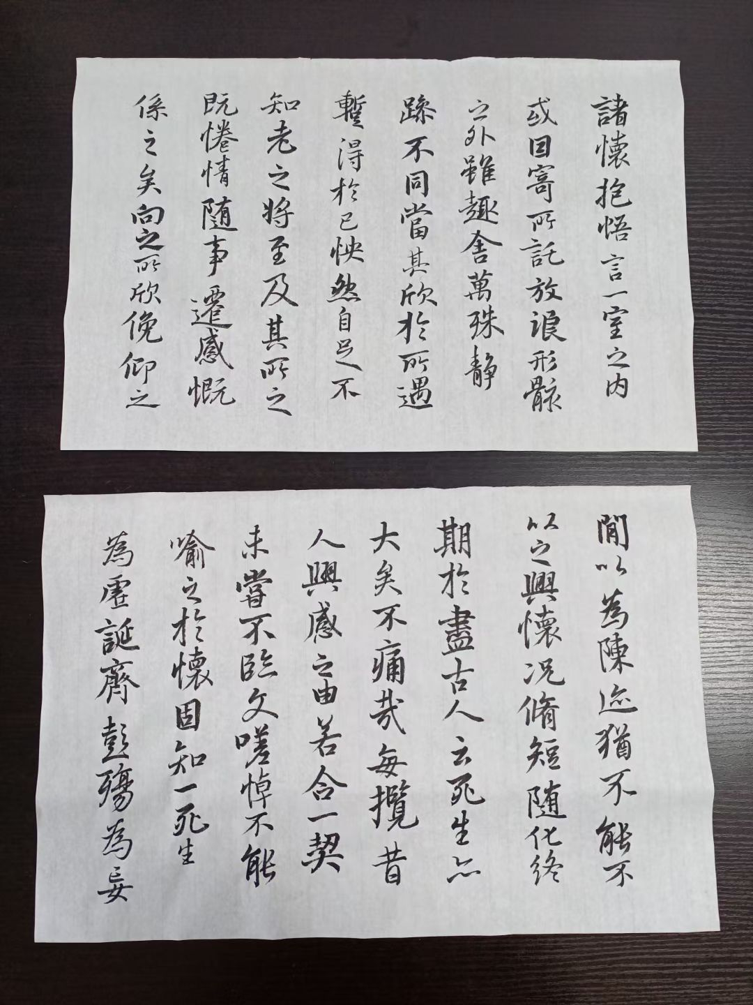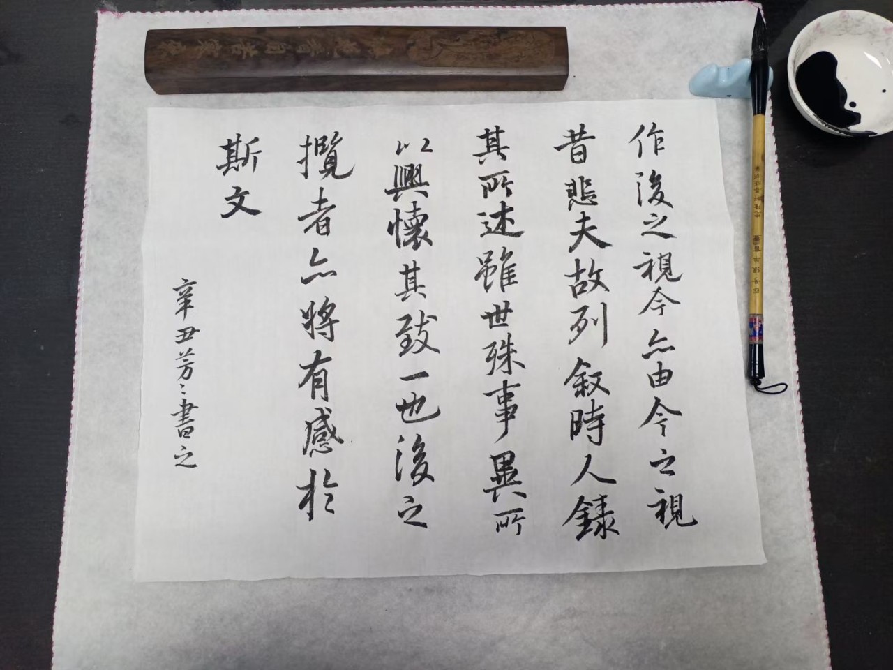 其书法《兰亭序》更显功力,墨色浓淡如“雨前初见花间蕊”,字迹遒劲似“铁画银钩”,行笔间既有“笔落惊风雨”的豪情,又含“润物细无声”的细腻,落款与印章相映成趣,如“画龙点睛”,使整幅作品在形式与内容上达到“天人合一”的和谐。