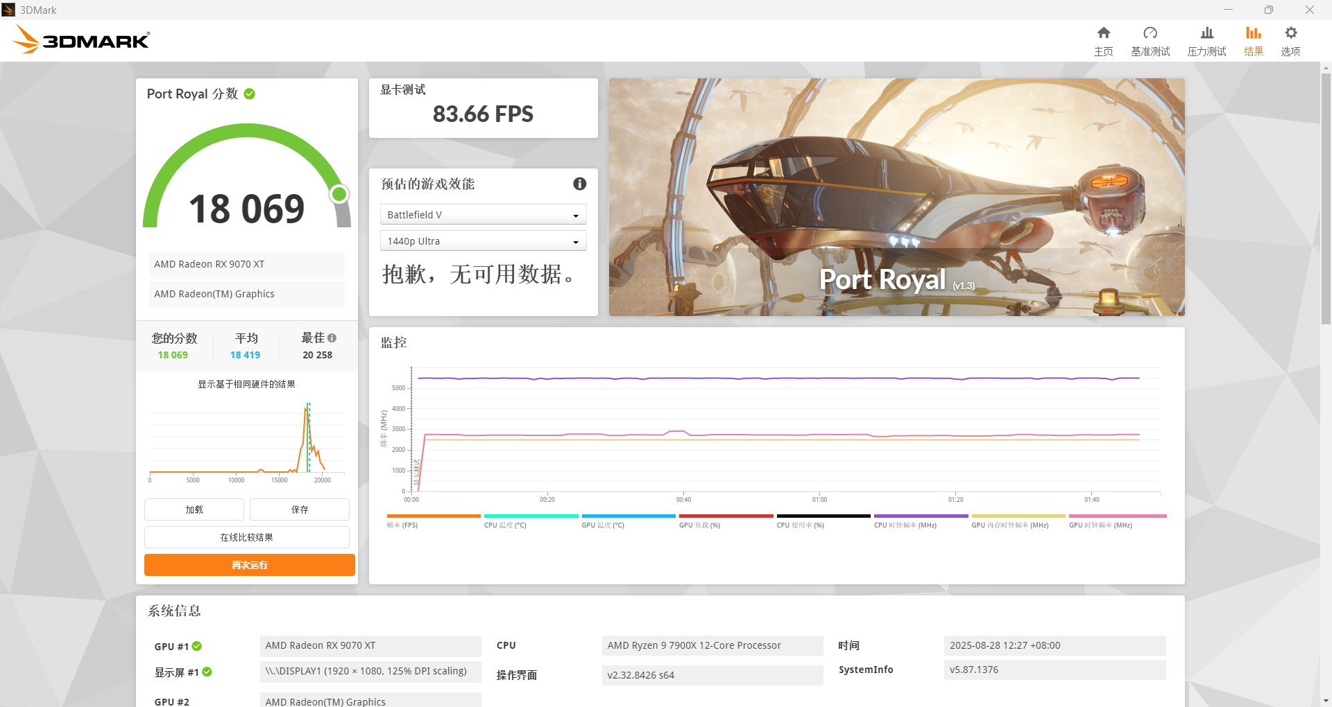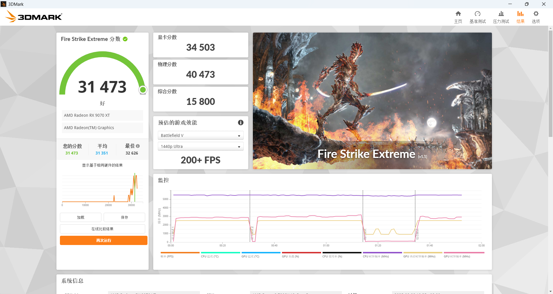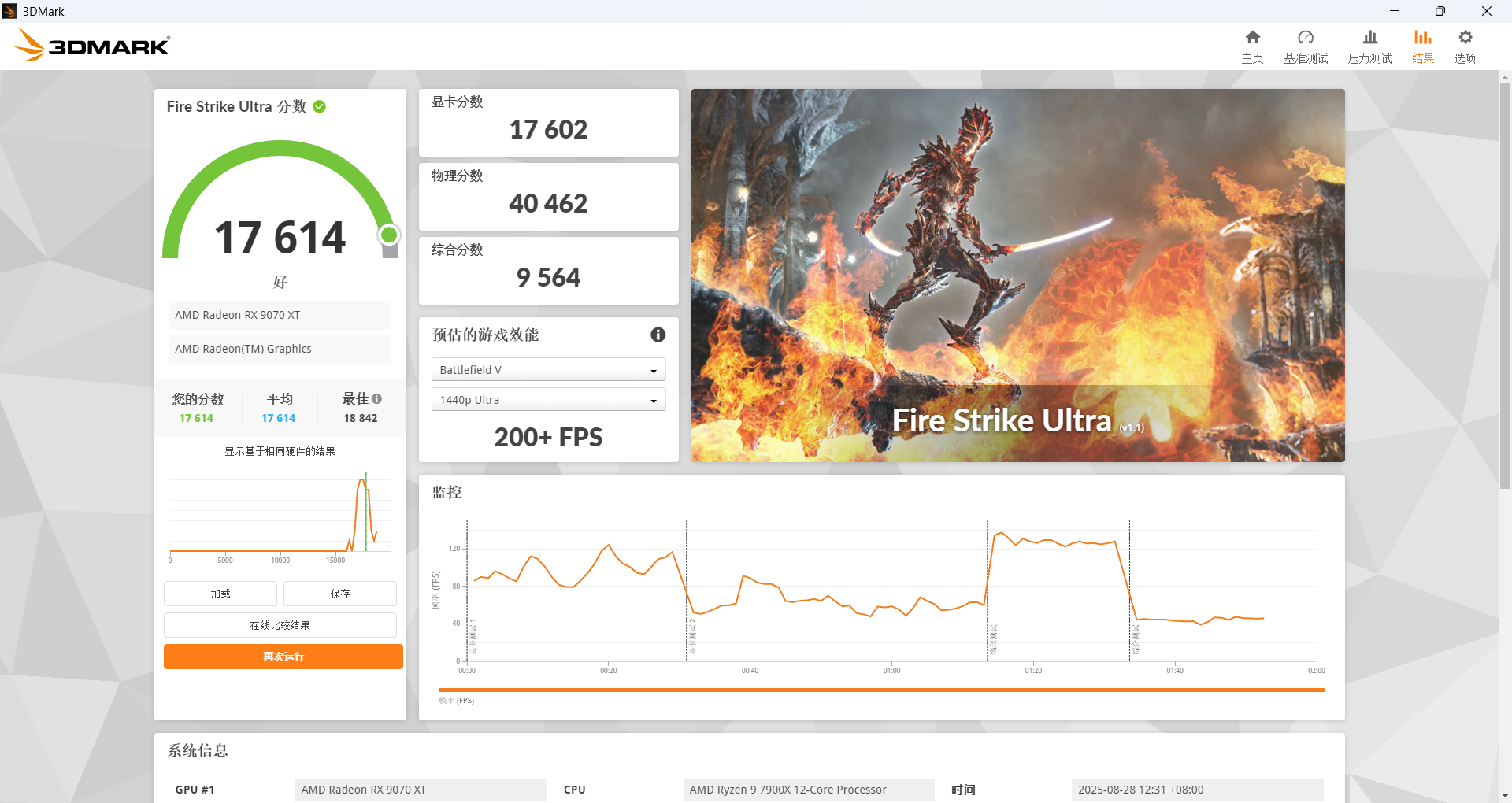 9070XT也会用4K分辨率玩游戏,所以我测试了FSU,显卡分数为17602分。