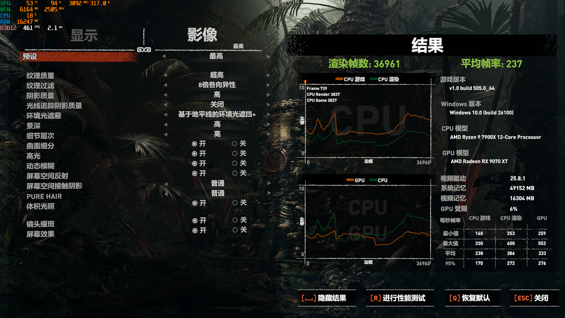 在3A游戏古墓丽影中,平均帧214.7 帧, 1% low134.9 帧,基本上3A都可以畅玩。