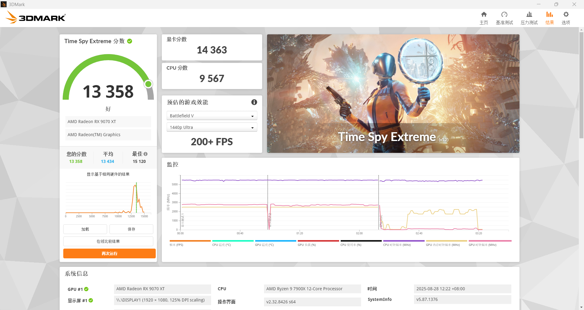 在TSE中,显卡分数14363分,CPU分数9567分。