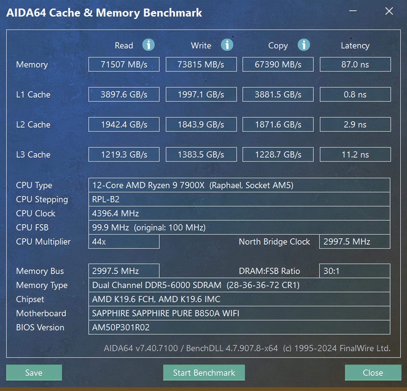 AIDA64内存跑分没啥问题,读写复制拷贝延迟都在正常范围内。