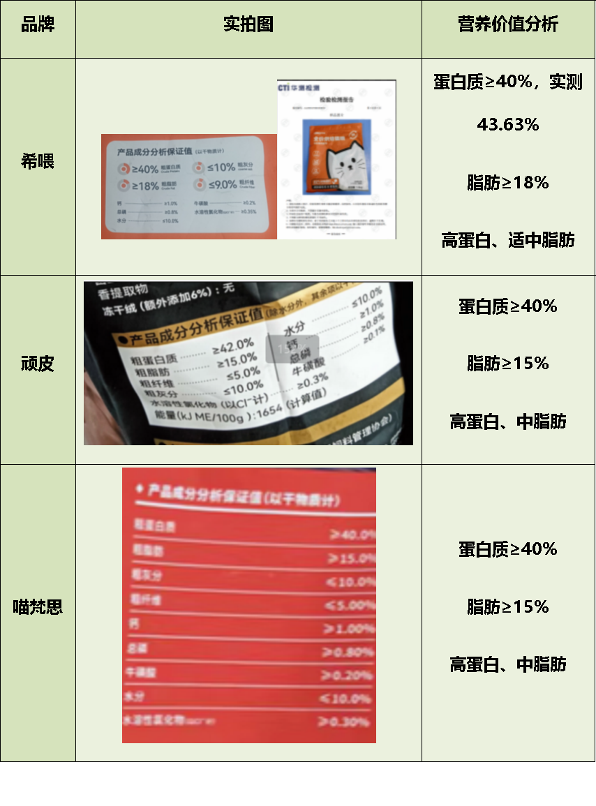 实测对比三款性价比高的猫粮,原料质量直接决定了成品的营养价值。用鲜肉或冻肉做的猫粮,其营养保留远高于用肉粉做的猫粮;此外,有些猫粮的营养数值很高,但用了很多的谷物原料,无法被猫咪有效吸收利用的植物蛋白更多,那这款猫粮的有效营养比较低,达不到标注的数值,也不建议选。本项测试是评估猫粮有效营养是否真正满足猫咪的需求。