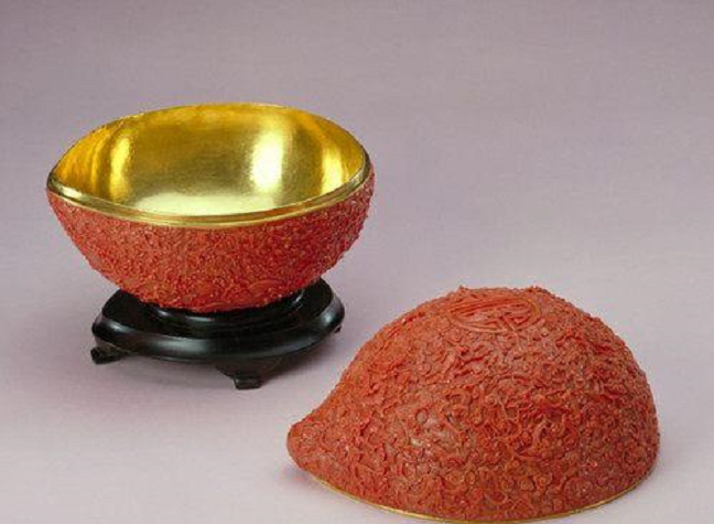 以上所置之宝系私人孝敬,不列公账者。众人置后,方将陀罗金被盖后身。后头戴珠冠,其傍又置金佛、翠佛、玉佛等108尊。后足左右各置西瓜一枚,甜瓜二枚,桃、李、杏、枣等宝物共大小200件。身后左旁置玉藕一只,上有荷叶、荷花等;身之右旁置珊瑚树一枝。其空处,则遍洒珠石等物,填满后,上盖网珠被一个。殓礼已毕。”