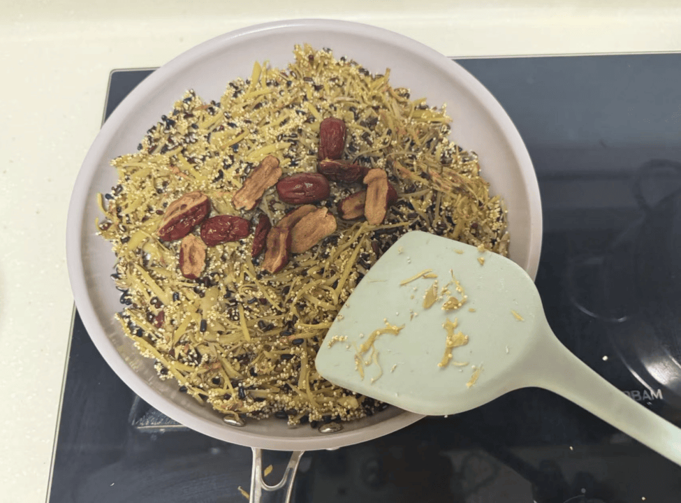 上海36度的天气里,兰戈在唯一没有空调的厨房里,把煤气灶开到最小火,花了将近半个小时才炒好一罐小米红枣姜茶。