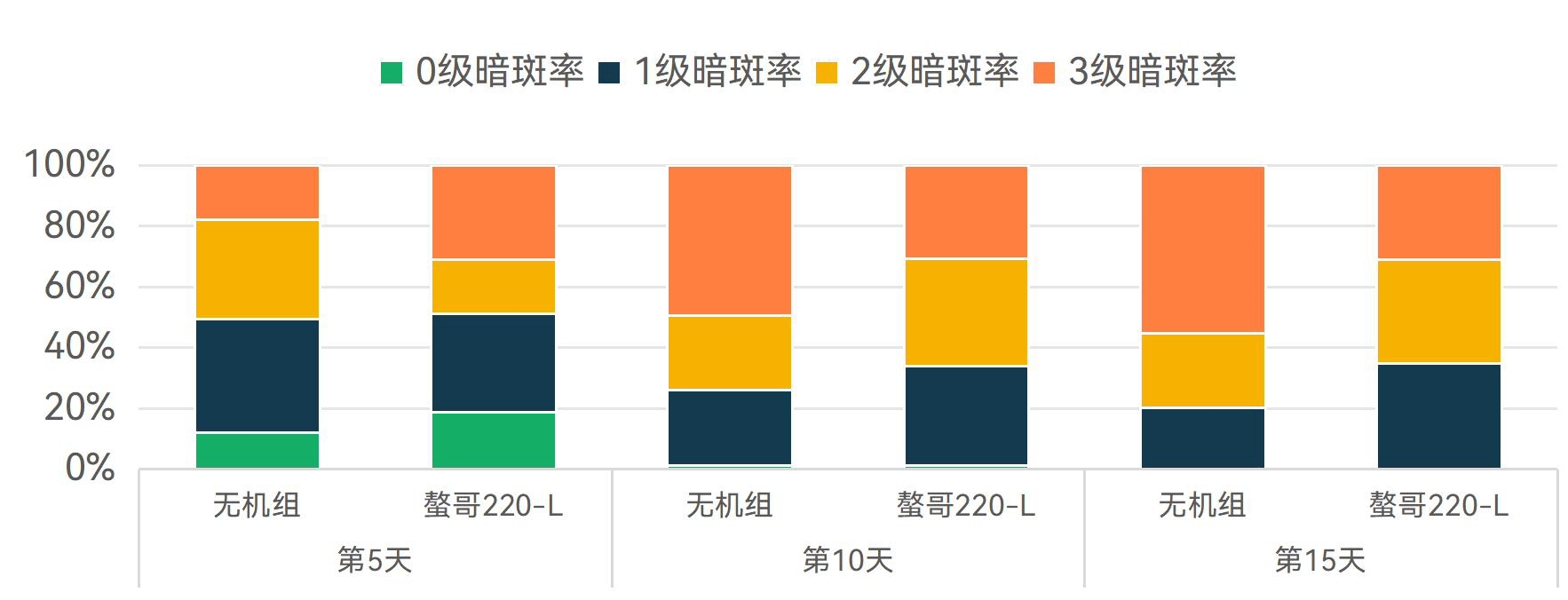 螯哥220-L有降低暗斑蛋发生的趋势,尤其是降低高分暗斑的发生。