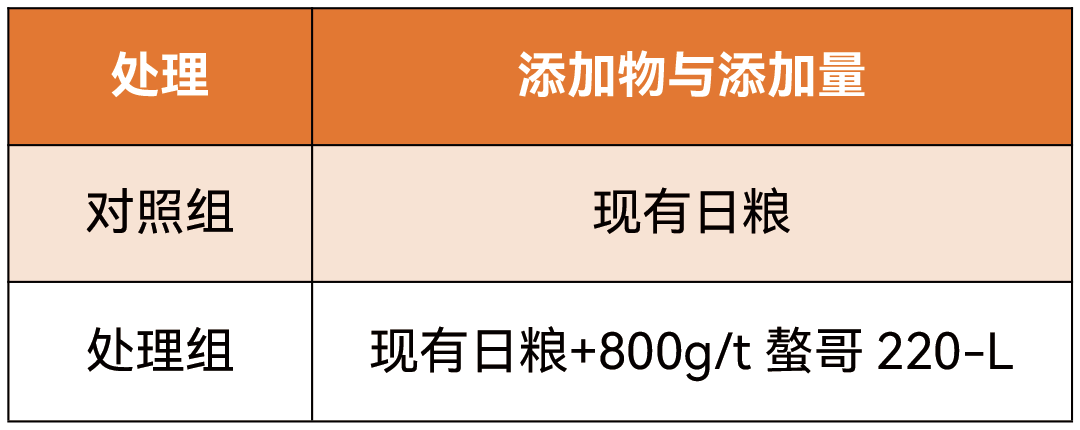 将445日龄的产蛋后期京粉1号蛋鸡分为2个处理,具体设计见表。