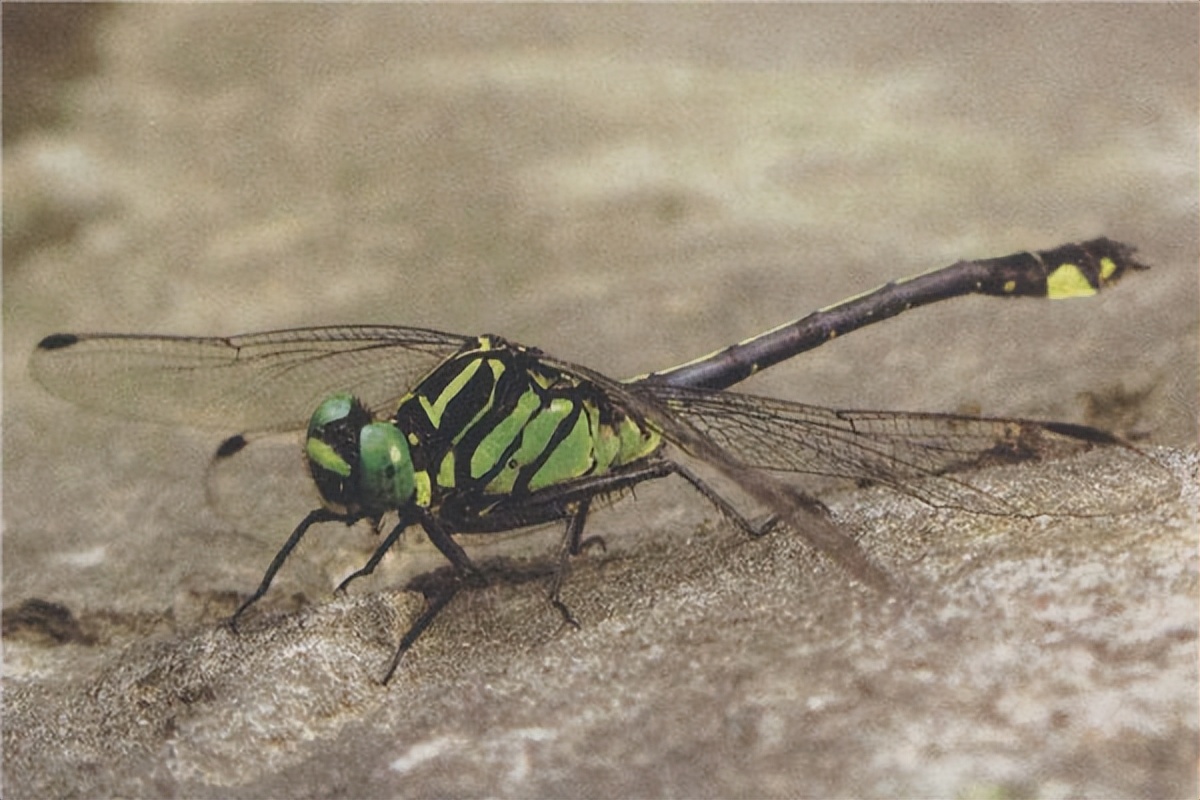 宽纹北箭蜓是蜻蜓的一种,它的头部和身体前面都是黑色,然而宽纹北箭蜓的背部,尾部以及翅膀都含有黄色斑点,外表比较好看。