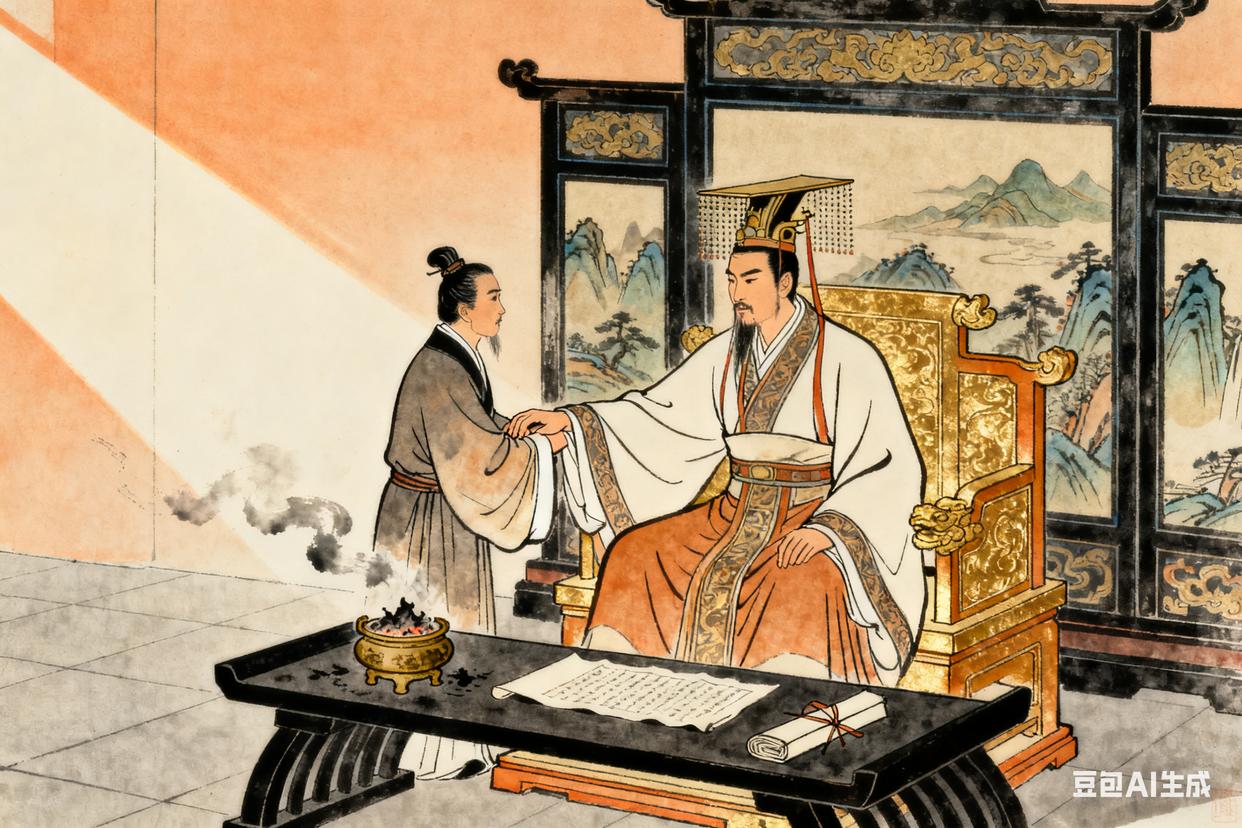 当天下午,李世民走进太极宫时,李渊正坐在御座上发呆。铜炉里的沉香已经燃尽,只剩下点灰烬。李渊看见他进来,招了招手:“过来。”李世民走到御座前,刚要下跪,李渊却伸手扶住他的胳膊。他的手很凉,像块冰:“从今天起,你就是太子。”李世民低头时,看见李渊的袖口沾着点墨迹,那是早上写诏书时蹭上的。窗外的阳光斜斜地照进来,落在李渊的白发上,像撒了层霜。