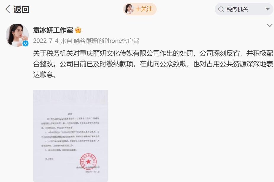 袁冰妍的公司早在20222年,就因为偷税漏税上了热搜。