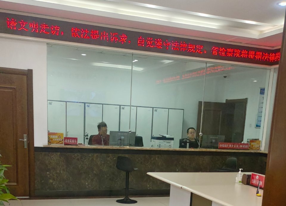 等待了二十分钟,第二位检察官查看了资料,说里面程序违法需要专门的部门说了算,申请人写的诉求不符合,提交的新证据不能用,回去吧,会给手机发个短信电子版的不予受理回执通知,但是不盖章,申请人要求出具一个纸质版的不受理复查回执,口口声声一直就是短信回复,重来没有出过纸质版的回执,申请人问没有盖章的不算,那不是检察院的意见,只能是你们口头上的个人意见,形不成证据,到最后都不搭理申请人了,说今天领导就不在,没有值班的见不上请回吧。