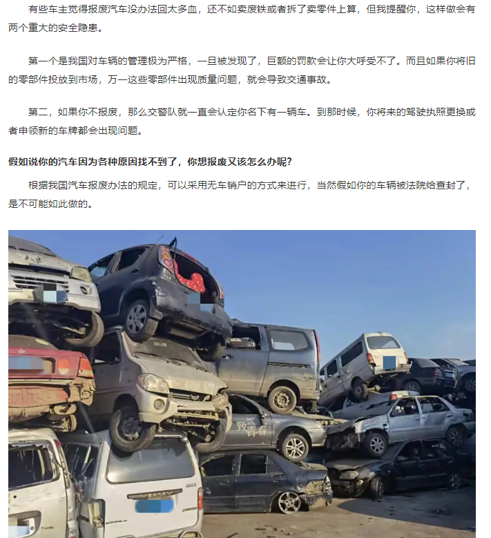 不去车管所报废,而是把车当废品卖,对车主有什么害处吗?