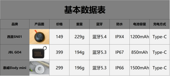 三款音箱续航时间最久的是西圣,这款音箱配备的是1200mAh的电池容量,中音量播放的整体续航时间为15:32:27,这个续航时间几乎可以满足日常户外使用的所有需求;