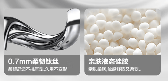 佩戴体验:这款耳机外观采用符合人体工学的弧度设计,搭配0.68mm超细钛合金丝和亲肤液态硅胶,佩戴起来柔和贴合,即使长时间使用也不会明显压耳。音质方面:内置Hi-Res认证单元与定向传音技术,低频表现浑厚有力,节奏感突出,但在高频延展上略显一般,听流行和电子音乐更合适。