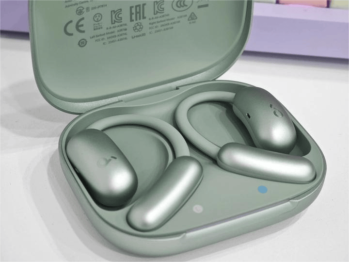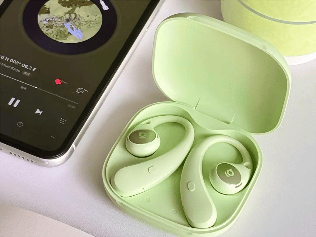 外观材质:共有云朵白、丝绒黑和松针绿三种颜色,松针绿版本较为独特,时尚亮眼。挂耳的接触部分有些厚重,耳朵会感受到一定的压迫感,长时间佩戴可能会有些不适应。