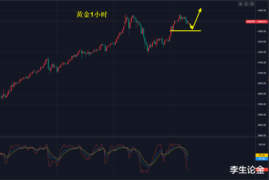 今天,前高点会不会破位?这里是形成双顶还是说继续破高?我认为回调后关键在凌晨支撑点4300美元/盎司,向上就看前高点4385美元的破位情况,这一波涨了1200美元了,也是此次上涨幅度最大的一次。