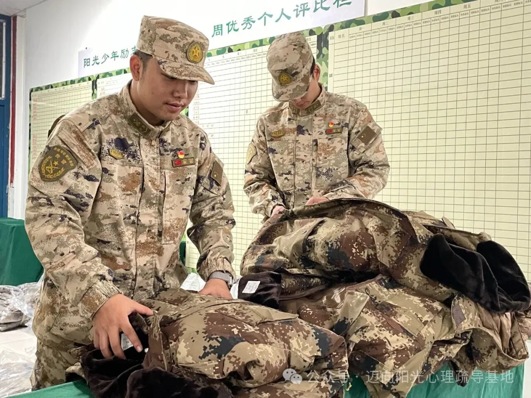 下午,各班级在教官的组织下,整齐有序地排队等候。发放现场井然有序,教官们根据提前统计好的尺码,将一套套厚实崭新的衣物分发到每个班级、每一位学生手中。孩子们接过这份“冬日礼物”,脸上洋溢着惊喜与期待。