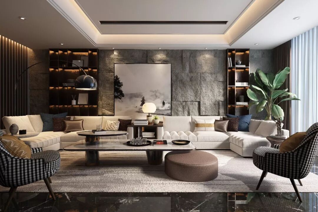 一般来说,沙发大小占客厅面积的四分之一,既不会显得空旷,又不会太过于拥挤,起到良好的视觉平衡的作用。