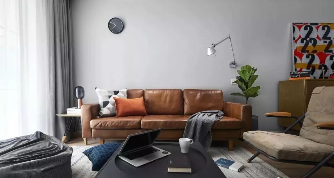 棕色的皮沙发其实很常见,而且棕色或者橘黄色的沙发自带温馨质感。