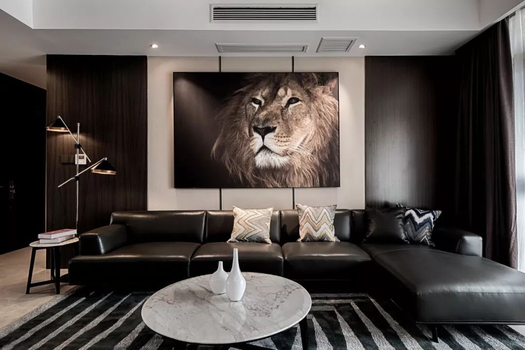 黑色的沙发其实在案例中也不多见,黑色虽然算百搭,但在家里用得多容易显得暗。