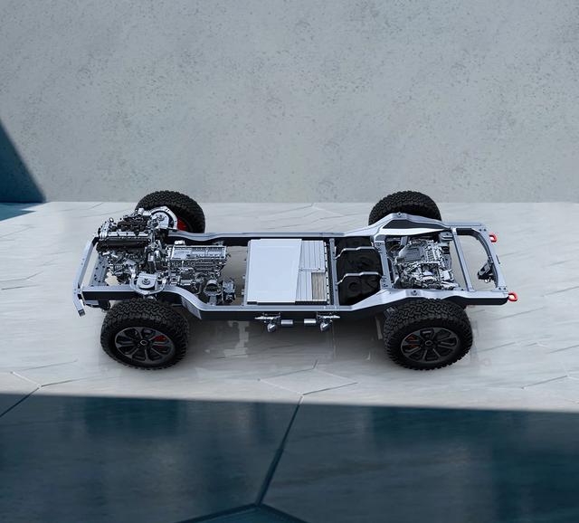 支撑起豹5市场热度的核心,是其搭载的DMO超级混动越野平台。这套以电为主的架构,打破了传统越野的动力逻辑,搭载1.5T骁云插混所用发动机,搭配前后双电机,系统综合功率505kW,峰值扭矩760N·m,官方百公里加速4.8秒,动力表现出众。通过P2.5电机布局可实现动力解耦,低速越野时电机直接输出峰值扭矩,毫秒级响应的电四驱配合“智能三把锁”(前/后电子差速锁 + 中央差速锁),响应速度优于传统机械四驱,单侧车轮着地也能轻松脱困,45°陡坡、交叉轴、沙漠刀锋坡等复杂路况都能从容应对。更关键的是,这套系统兼顾能耗优化,官方亏电油耗仅7.8L/100km,彻底解决了传统越野车“油老虎”的痛点,让越野不再是高成本的小众爱好,普通人也能轻松体验越野乐趣。但在纯电模式下持续高强度越野时,电池电量消耗速度会比预期略快,需及时切换混动模式或补充电量,避免影响后续脱困能力。