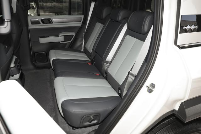 舒适性是豹5的核心亮点之一,重新定义了硬派越野的驾乘体验。该车全车采用Nappa真皮座椅,触感柔软亲肤,前排支持14向电动调节,配备加热、通风与10点SPA按摩功能,长途驾驶时能有效缓解腰背疲劳;后排座椅支持靠背角度调节,标配加热功能,高配版还新增通风功能,兼顾不同季节的使用需求,高回弹填充材质带来适中的支撑性,久坐也不易疲惫。客观来说,座椅侧翼的包裹性在高强度越野场景下,对身体的固定效果略逊于部分越野座椅,长时间高强度越野可能需要自行调整坐姿。