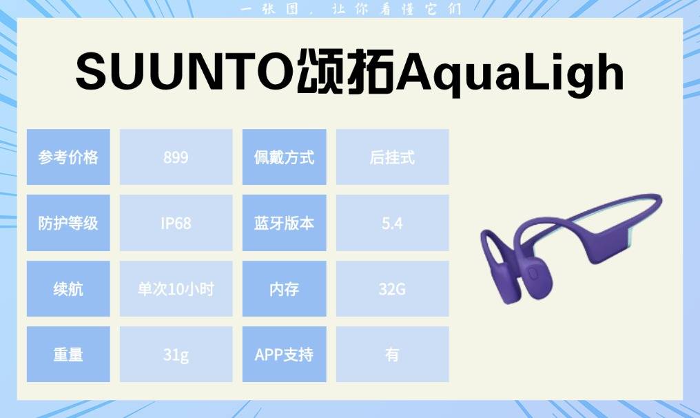 SUUNTO颂拓AquaLight在品牌里定位为专注游泳和跑步的专业骨传导耳机,比Wing更偏向水上运动,适合喜欢在泳池或户外训练时听音乐的人。它支持蓝牙和离线模式,不管是在泳池还是户外跑步,都能让音乐随时在线,灵活性很高。