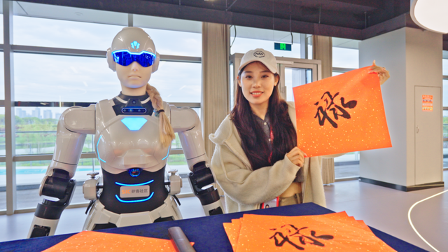 科技与传统碰撞的惊喜也拉满 ——AI 书法机器人挥毫泼墨,能为你定制专属诗词、祝福语,落笔行云流水,古韵十足,这份独一无二的科技伴手礼,直接打包带回家,既有排面又有纪念意义。还有人形机器人随乐起舞,机械舞步精准流畅,科技感爆棚,随手一拍都是科幻大片;更有智能下棋机器人坐镇棋桌,不管是围棋、象棋都能对弈,边玩边感受 AI 思考逻辑,不知不觉涨知识。