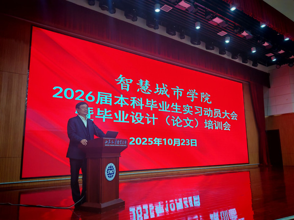 为助力2026届毕业生迈好从校园到职场的关键一步,厘清毕业设计(论文)的创作思路,10月23日,智慧城市学院在学校图书馆报告厅召开2026届毕业生实习动员大会暨毕业设计(论文)培训会。学院院长张全景教授、教学副院长戚晓霞、副院长刘金磊,建筑装饰教研室主任肇磊、工程造价专业骨干教师梁川红,以及毕业设计(论文)指导教师与全体2026届毕业生齐聚一堂,以“答疑解惑、凝心聚力”为主题,共话毕业季的成长与担当,为学子逐梦之路点亮前行明灯。