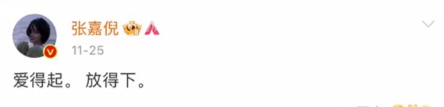当众人以为是误会时,张嘉倪随后发了微博:爱得起,放得下。