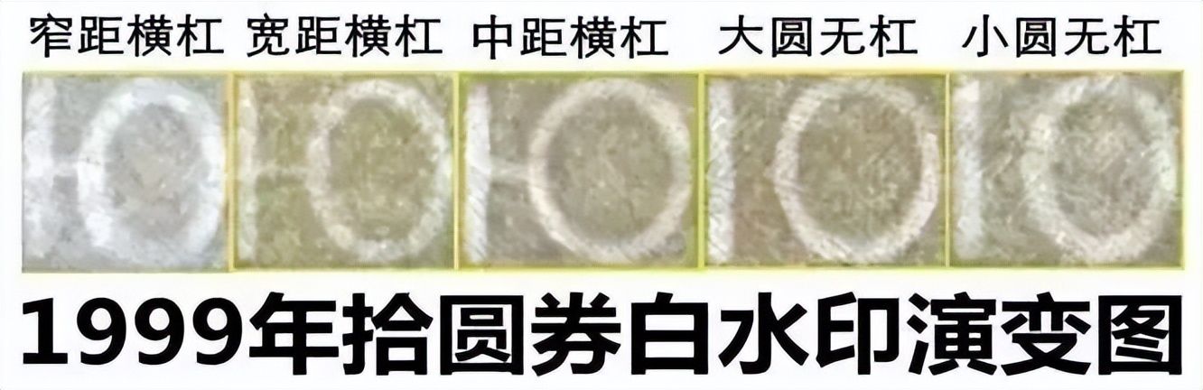 第二种、中水和窄水10元在99年10元纸币中,测试运用了多种不同的工艺。