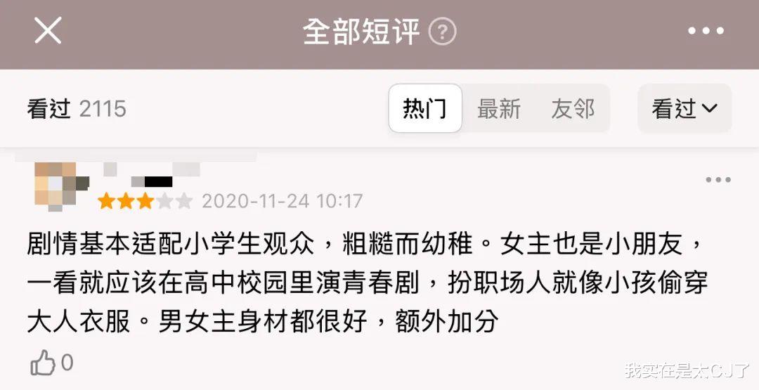 观众辣评:该演校园剧的小姑娘何苦偷穿大人衣服闯职场?