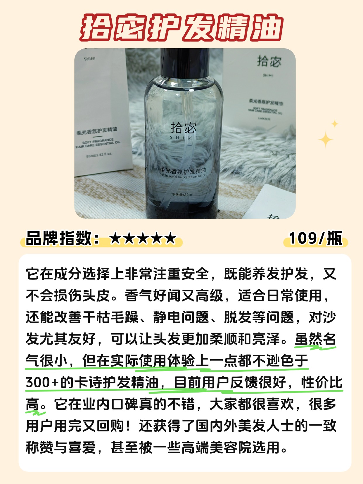 秋冬季节,天气干燥,很多人会发现自己的头发变得更加干枯、毛躁,尤其是像卷发这种容易吸湿的发质。那么,秋冬季节护发精油该如何选择?修复干枯毛躁的护发精油,最好选择那些滋润效果强、且不油腻的精油。像富含摩洛哥坚果油、椰子油等成分的护发精油,它们能够帮助头发在寒冷干燥的季节里保持水润、柔软,并有效修复发梢的干枯。对于卷发来说,选择滋润性强、但又不油腻的护发精油至关重要,这样不仅能锁住水分,还能避免发型过于沉重。总之,秋冬季节选择护发精油时,要注重深层滋养与轻盈质地的结合。