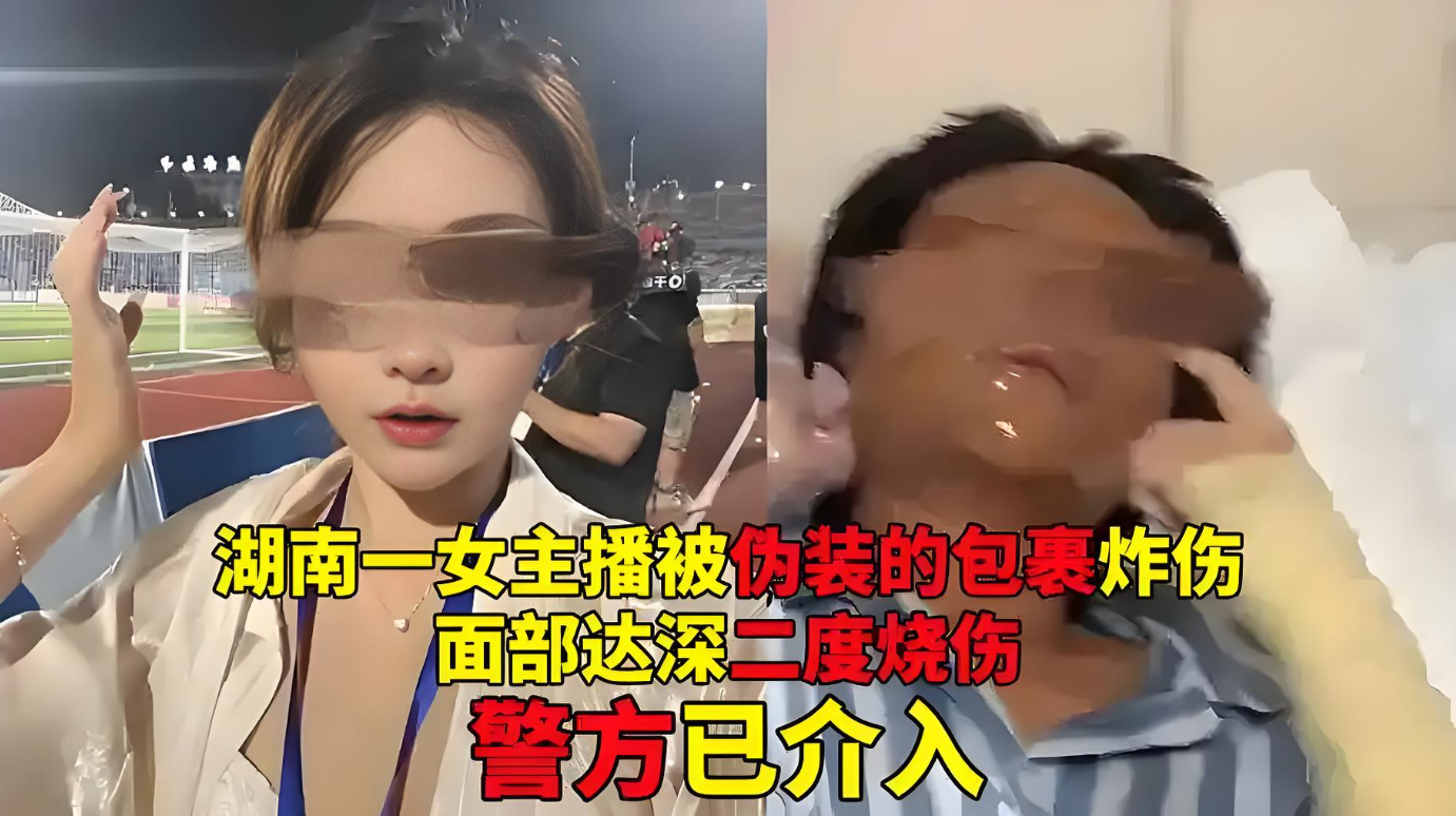 10月15日上午,湖南永州一名29岁女主播在家门口鞋架上发现一个伪装成快递的包裹,出于好奇拿起查看时,包裹突然爆炸。据她描述,“未拆封仅看一眼”便遭遇剧烈冲击,导致面部深二度烧伤、手臂深三度烧伤,双眼肿胀至“仅剩一条缝”,双手缠满绷带。监控显示,前一晚(14日21:49)一名戴帽男子曾鬼祟投放该包裹,随后迅速离开现场。