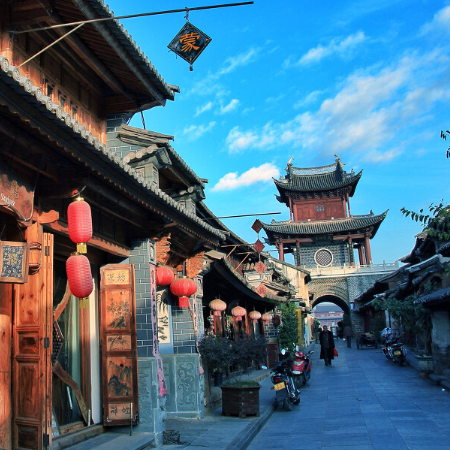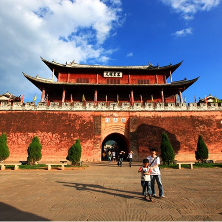 这座城市建立于元朝,明朝时改名为青砖城池。古城修建了围墙,东南西北四个方向的城门,城池中央修建了一座圆形的塔楼,呈方形,形状像印章。在这里,有许多关于南诏国的遗址,也有许多的神话故事。