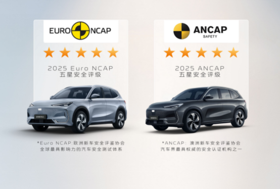 安全认证是衡量车型实力的硬指标。2025年4月,2026款银河E5海外版(命名为吉利EX5)在Euro NCAP欧洲新车安全评鉴协会测试中以145.4分斩获五星,次日又在澳洲ANCAP测试中以145.52分再获五星,成为10-15万中国品牌纯电SUV中唯一实现“左右舵同步全球双五星”的车型。这意味着无论是国内还是海外市场,银河E5的安全标准都达到了国际顶尖水平。