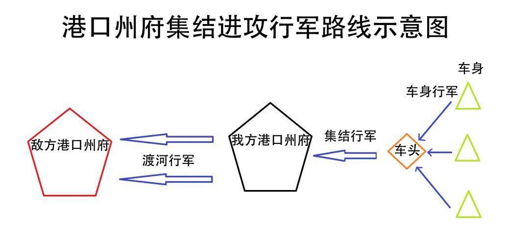 战中进攻:集结出发。各车头按照攻城指挥安排时间按序进行集结,对应组别车身集结时间内上车。同时部分非车头玩家晚车头到达时间1秒发起渡河集结。