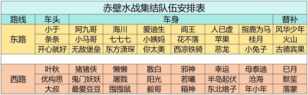 战前部署:集结分组。分组规则与陆战集结基本类似,只是多了东、西两条路安排。将车头按实力依序进行分组,并且交叉放置于东、西两条渡河路线。