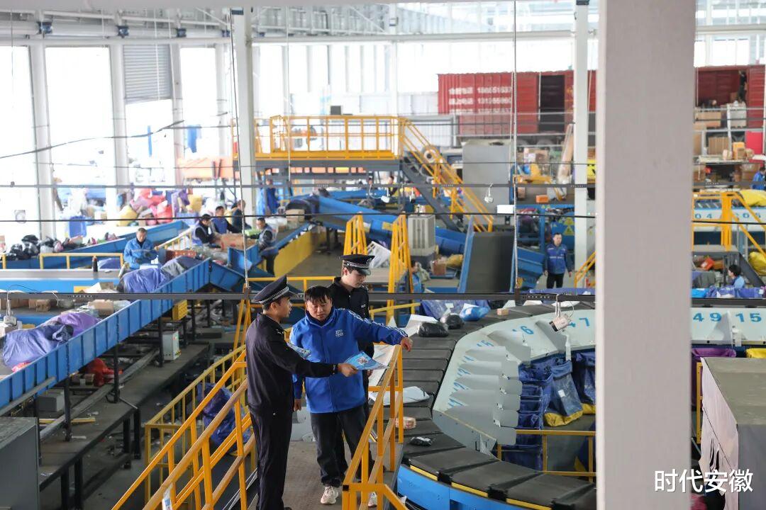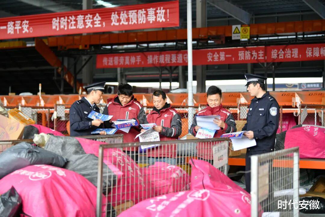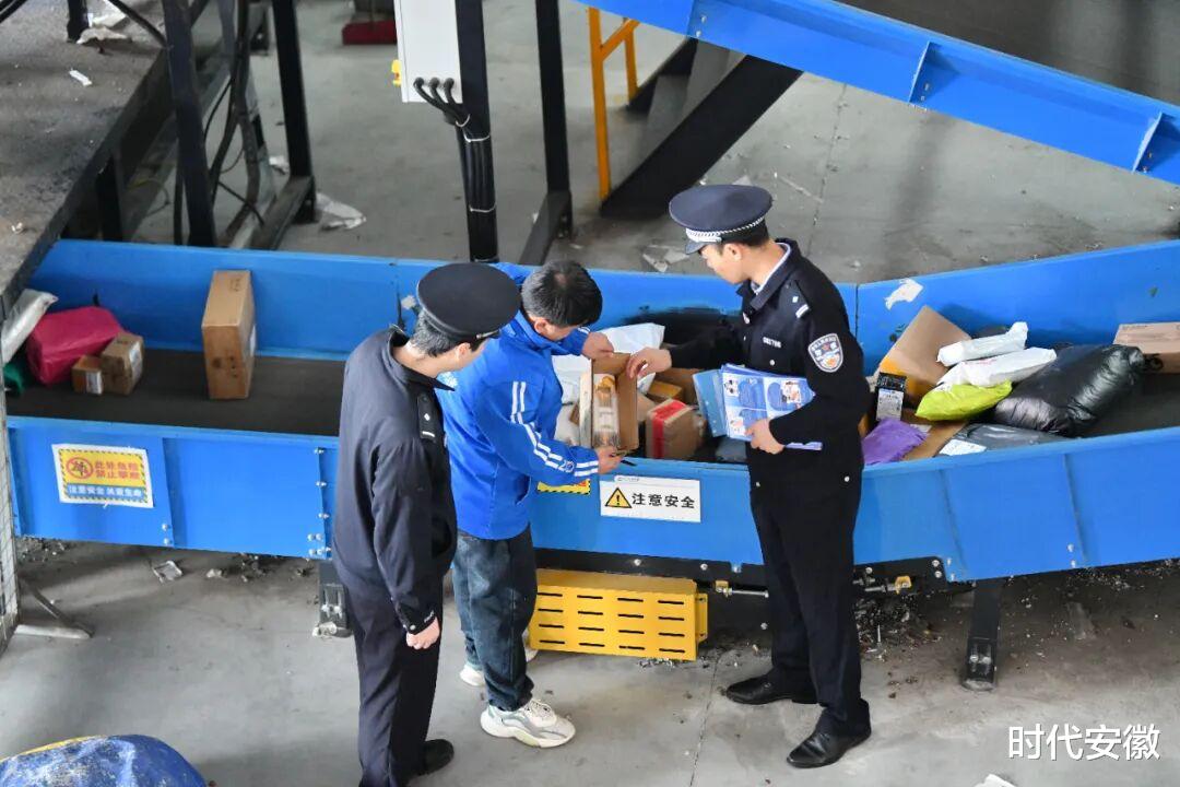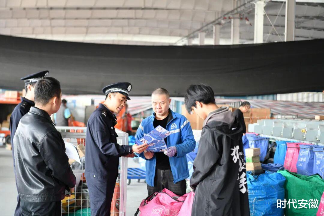 11月4日,阜南县公安局反电诈中心联合城关派出所对辖区物流快递业进行安全检查,保障辖区物流快递业务有序开展。