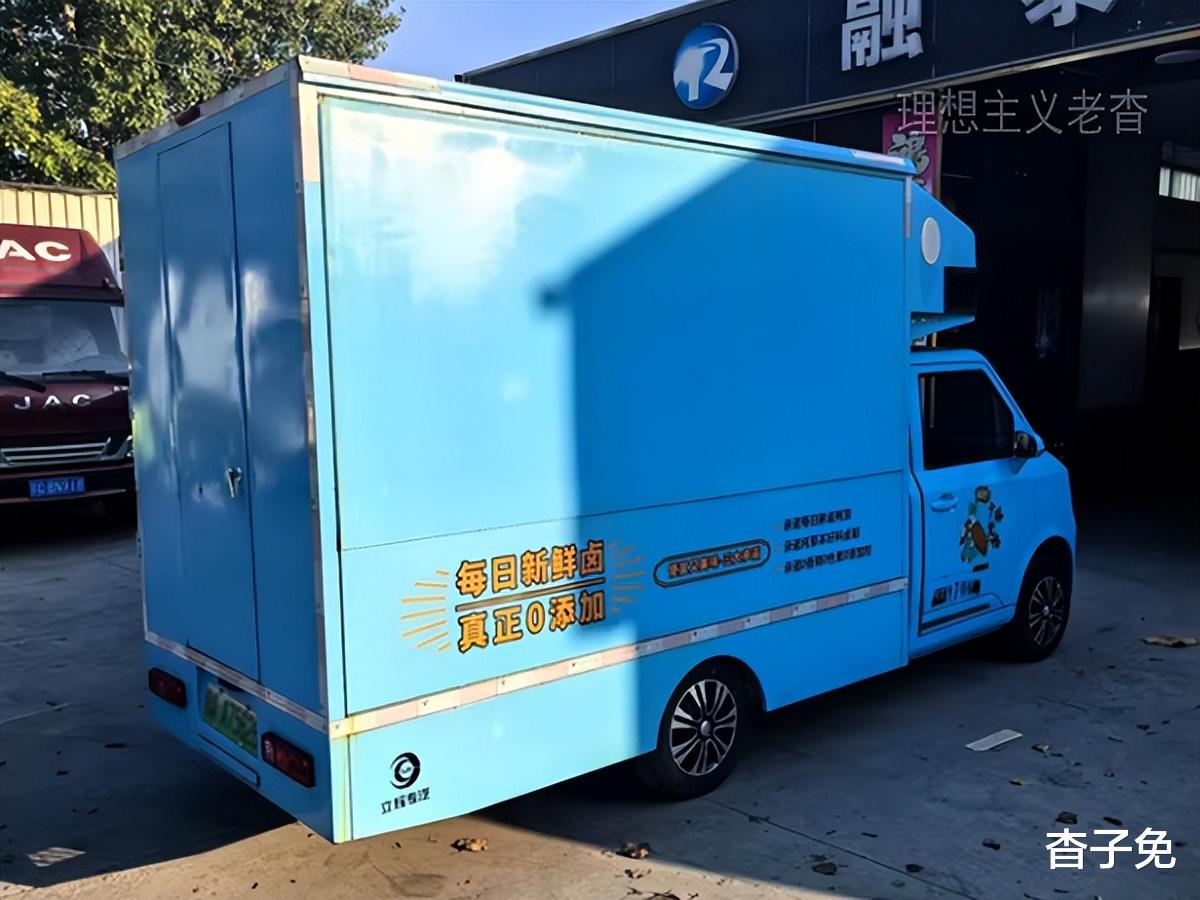 箱门在车尾是售货车常见布局,挂正规绿牌不怕查,纯电出行成本低,而且还能在路上摆摊,可谓一举两得,为改装房车旅行提供了新的参考。